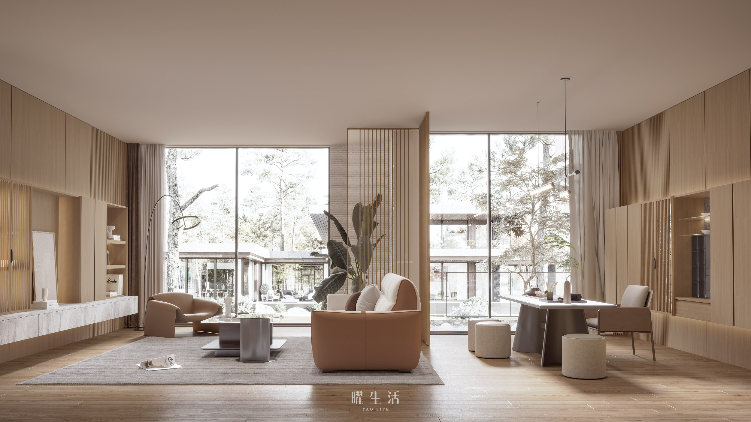 客廳與開放式茶室 —